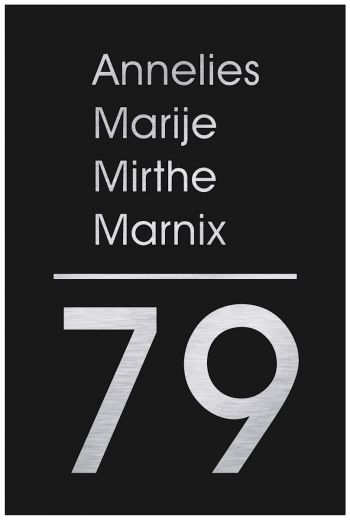 Deze naamborden worden gemaakt van uitstekende kwaliteit zwart kleurig dibond sandwichpaneel van 3mm dik. We kunnen deze naamborden voorzien van bijna alle ontwerpen die u maakt. Van een ontwerp met 1 kleur of een complete full color ontwerp, niets is te gek. Met onze UV printer kunnen wij voor u de mooiste naamborden maken. Al deze naamborden worden met blinde bevestiging geleverd, zo is de bevestiging van uw naambord niet te zien. Een montagehandleiding wordt altijd meegeleverd.